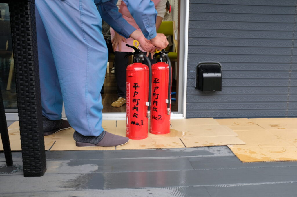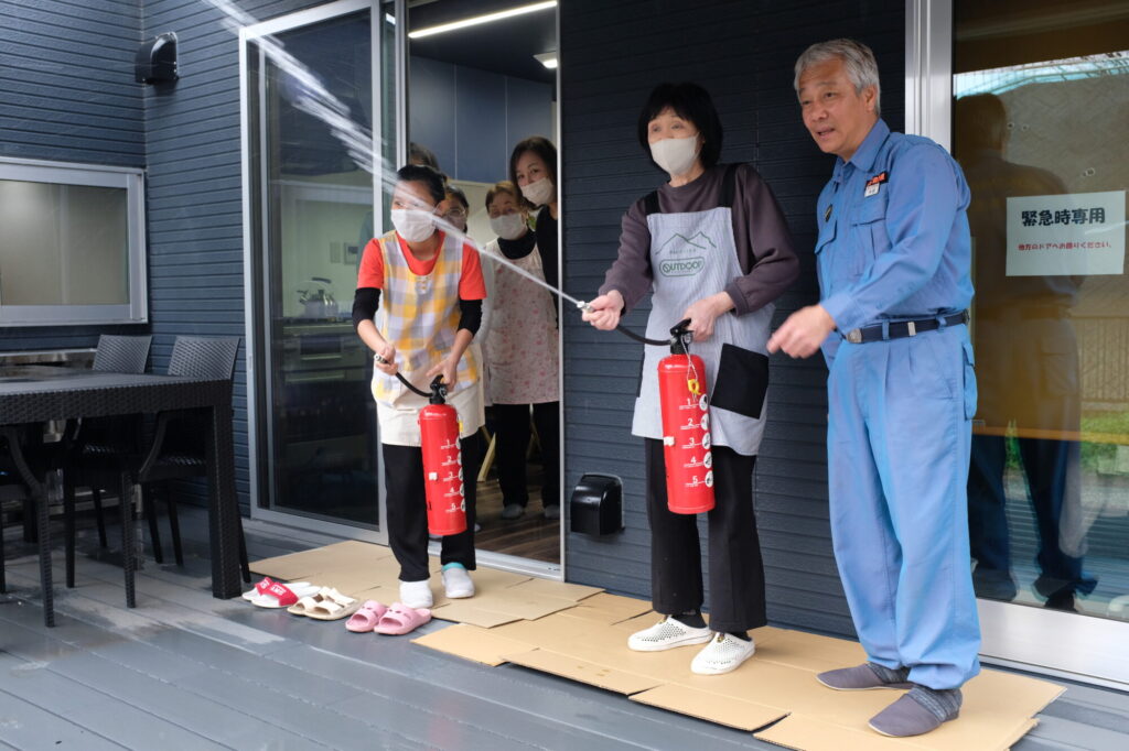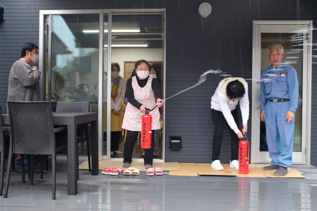 お隣の梨雲ハウス平戸さんと、合同の消防訓練を行いました。