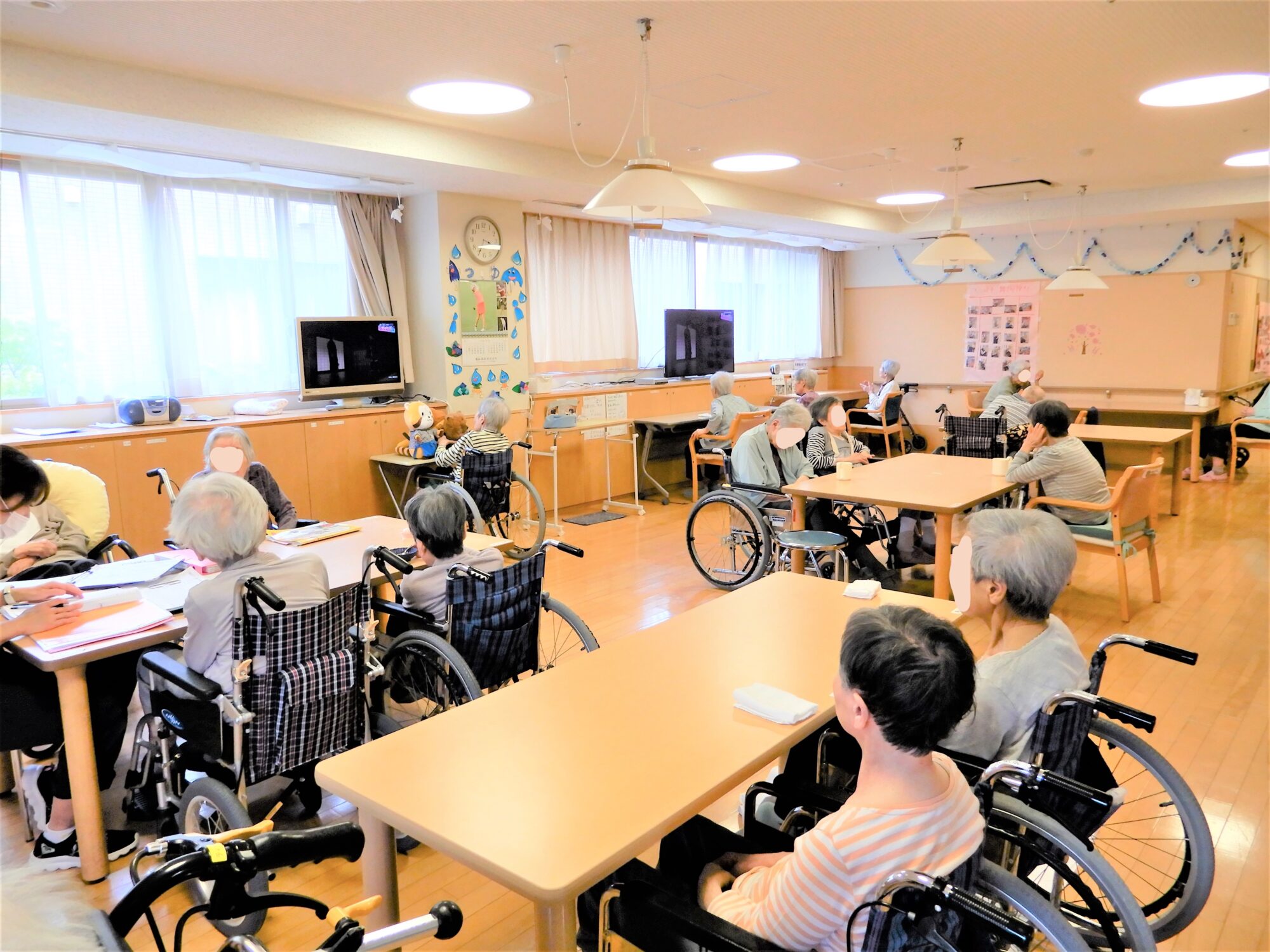 。また、皆様が心待ちにしているのは月に一度の歌の会や踊り等のレクリエーションです。 歌の会では先生を囲んで童謡や懐かしい思い出の歌を歌い、皆様の心がひとつになります