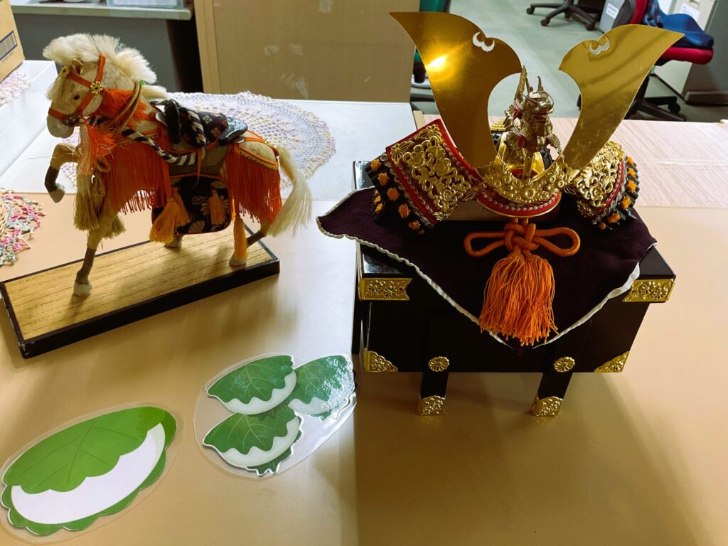 事務所カウンターにも兜・馬を飾りました。